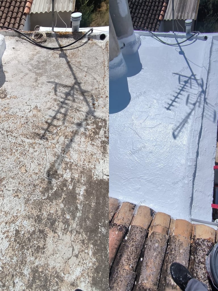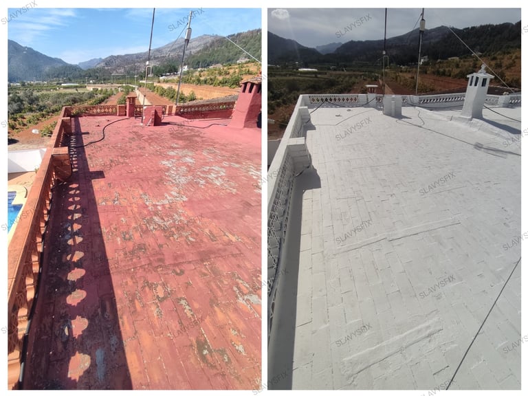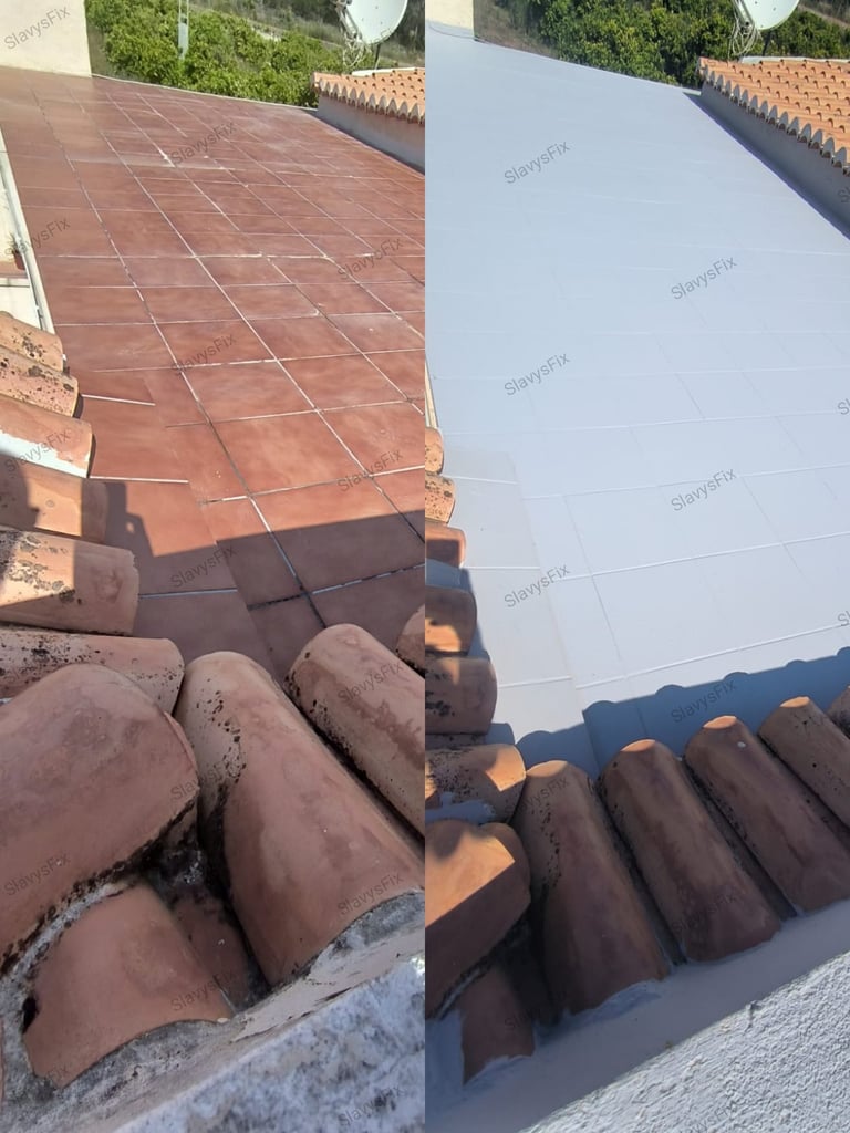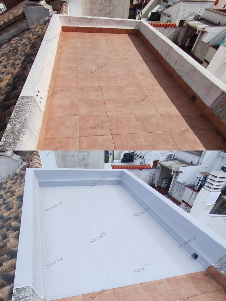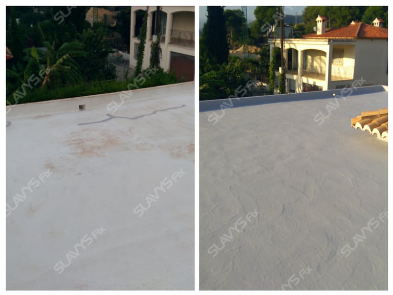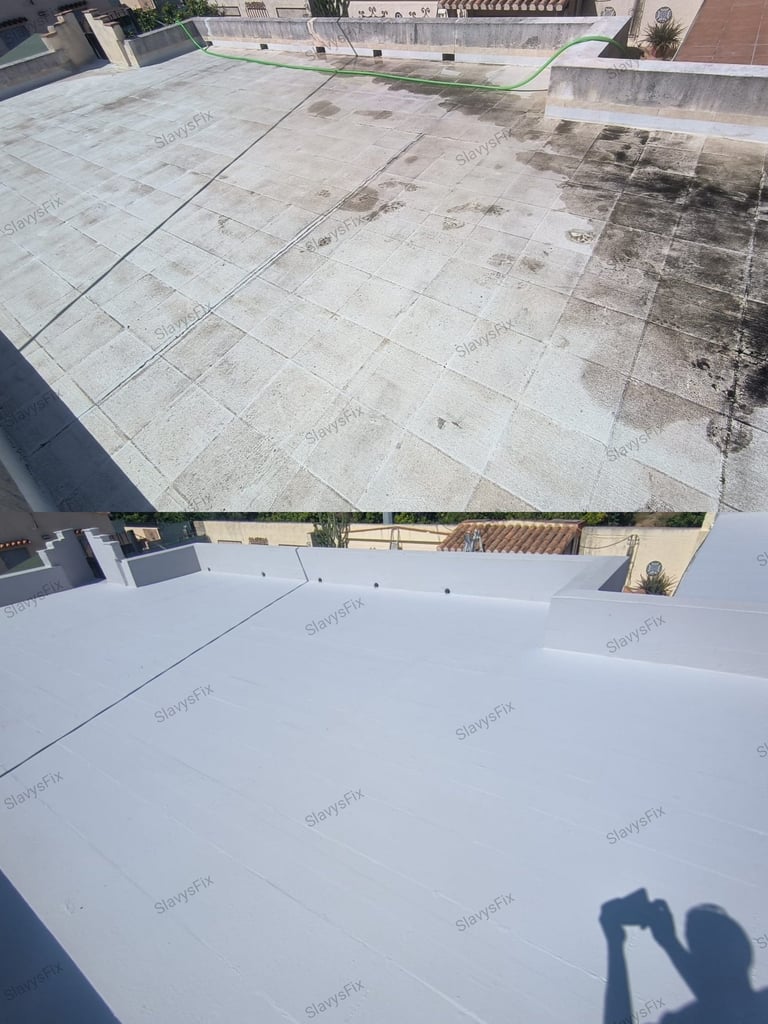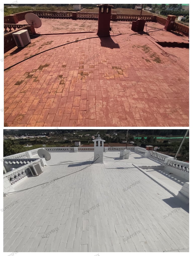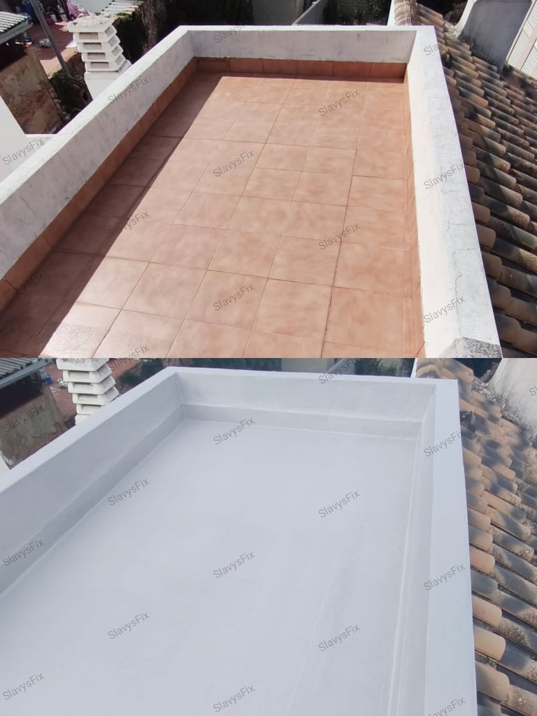 Impermeabilización de terrazas, tejados y cubiertas con pintura elástica aislante termico impermeabilizante antigoteras transitable y resistente UV.